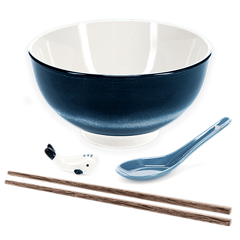 Enjoy noodles the authentic way with this charming noodle bowl set, designed to bring a quirky yet traditional feel to the table. The set includes a ceramic bowl and spoon, wooden chopsticks, and an adorable ceramic whale to rest the chopsticks on. The ideal gift for someone who loves to cook!